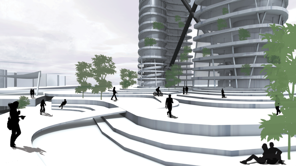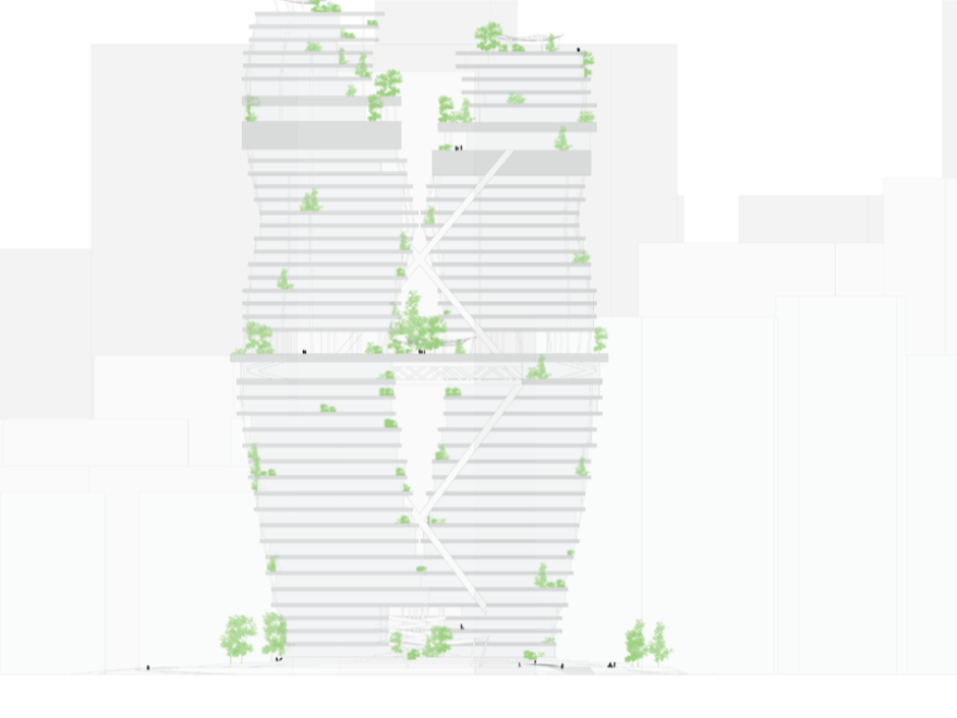 Das Thema für das Gebäudekonzept lautet "Vertical Green for a living City- The NEWScraper". Es soll eine Zukunftsvision für urbanes Leben beschreiben. Gleichzeitig steht das Konzept für die Verbesserung des Rufes von Wolkenkratzern, die als ausgestorbene, abgestumpfte Bürotürme gelten, und eine Neuinterpretation erfahren sollen. In der geplanten vertikalen Stadt sollen Mensch und Umgebung eine Einheit bilden. Wichtig dabei ist Soziales und Nachhaltigkeit miteinzubeziehen. Alle Funktionen, die in der horizontalen Ausdehnung einer Stadt zu finden sind, sollen dabei in die vertikale übersetzt werden. Diese Herausforderung spiegelt sich deutlich in der Entwurfsfindung wieder. Verschidenste Funktionen sind miteinander kombiniert. Besonders Zugänglichkeit und Erschließung innerhalb der öffentlichen und halböffentlichen Bereiche waren dabei von Bedeutung.
